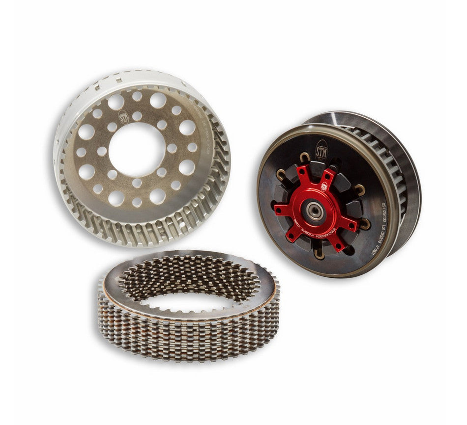 un embrague STM EVO-SBK, fabricado de aluminio macizo con caja y paquete